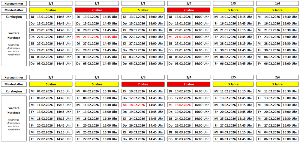 - Bitte beachten Sie bei der Kursauswahl das jeweilige Mindestalter.